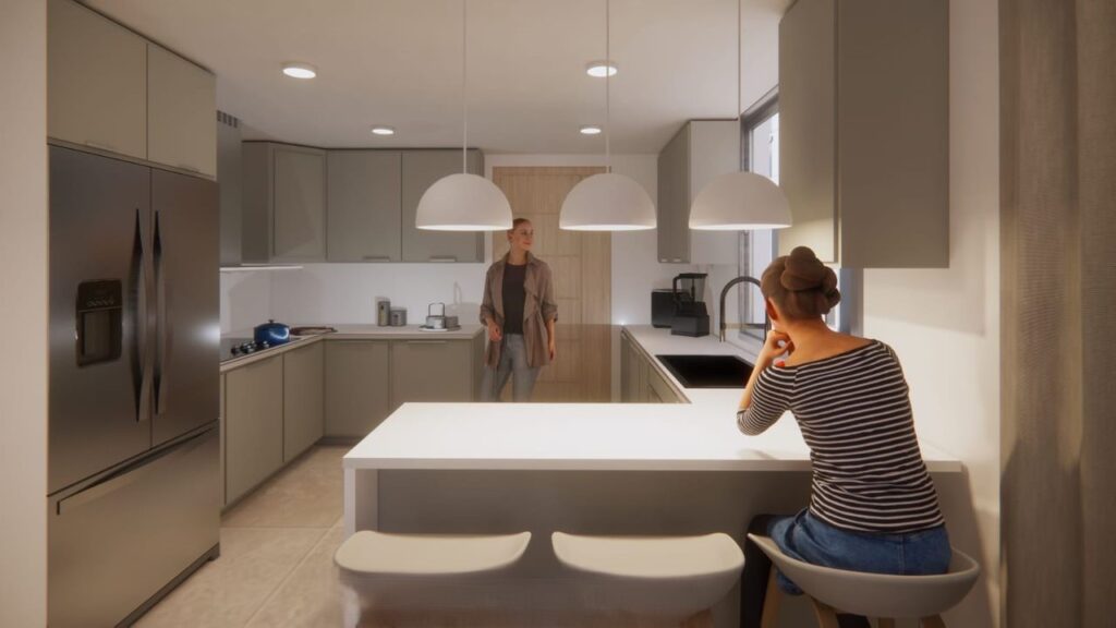 Cocina Fría Con Desayunador Y Topes En Cuarzo
