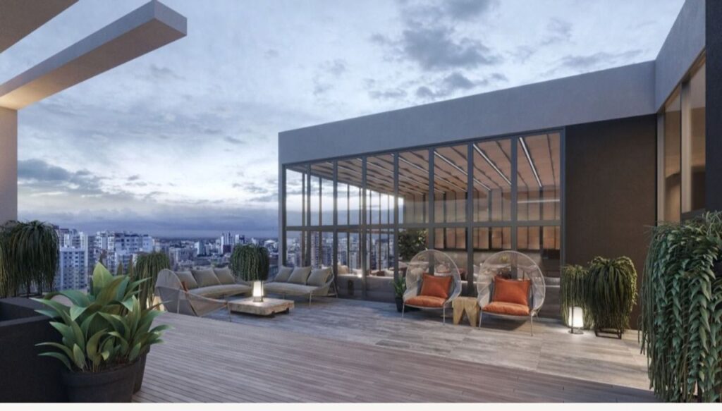 Moderna torre de apartamentos ubicada en Evaristo Morales, Santo Domingo cerca a la Ave. Winston Churchill, a centros comerciales, hoteles de lujo y centro empresarial de la ciudad de Santo Domingo, con acceso por dos importantes vías calle Paseo de los Locutores y Ave. Roberto Pastoriza.