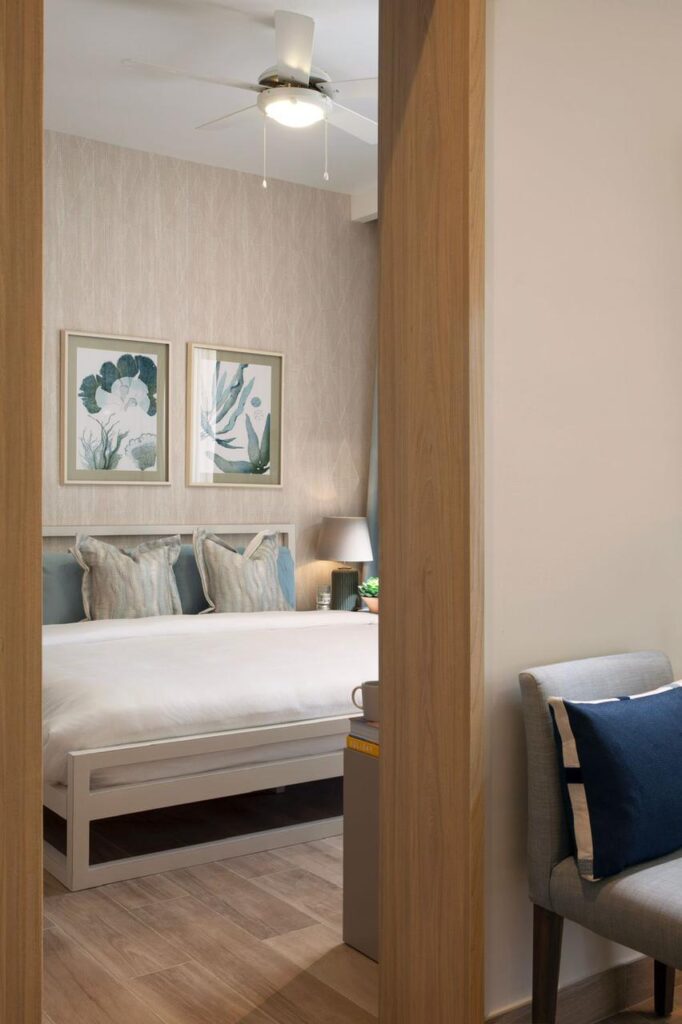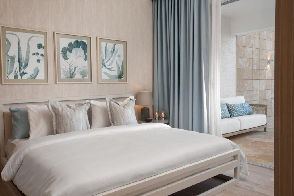 Apartamentos con 1, 2, 3 habitaciones con vistas a la playa privada y a las piscinas.