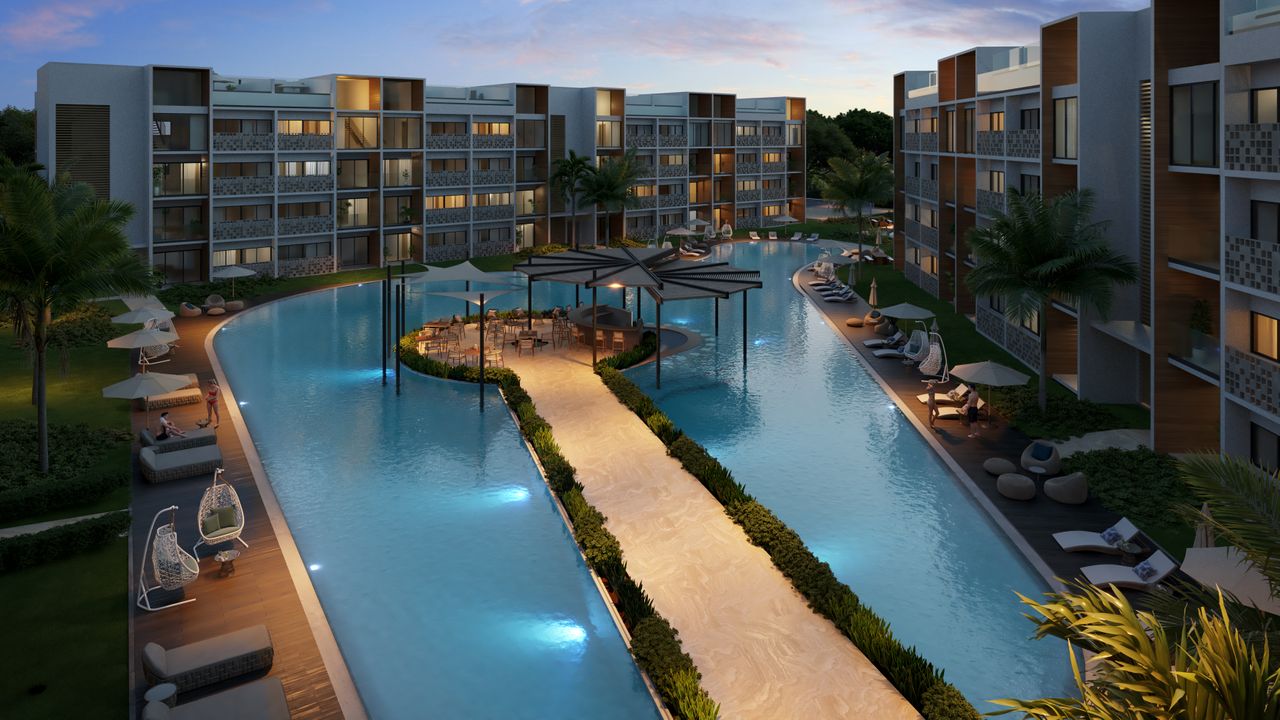 Este proyecto se divide en 3 bloques los cuales tienen apartamentos de 1 habitación más estudio con vistas a la piscina, en total cuenta con 96 Unidades.