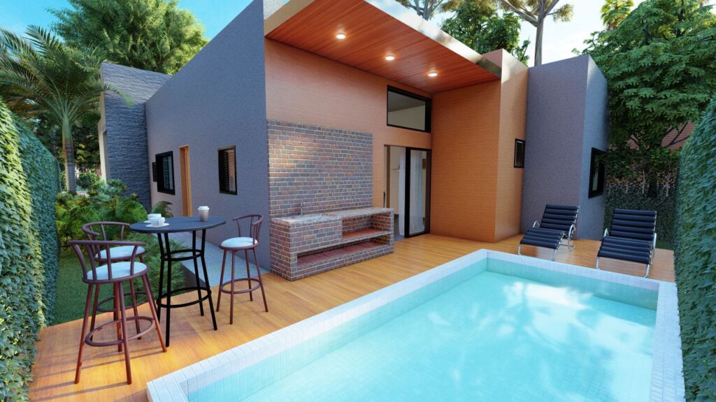 (Pisos de patio, pavi grama Piscina y BBQ costo adicional)